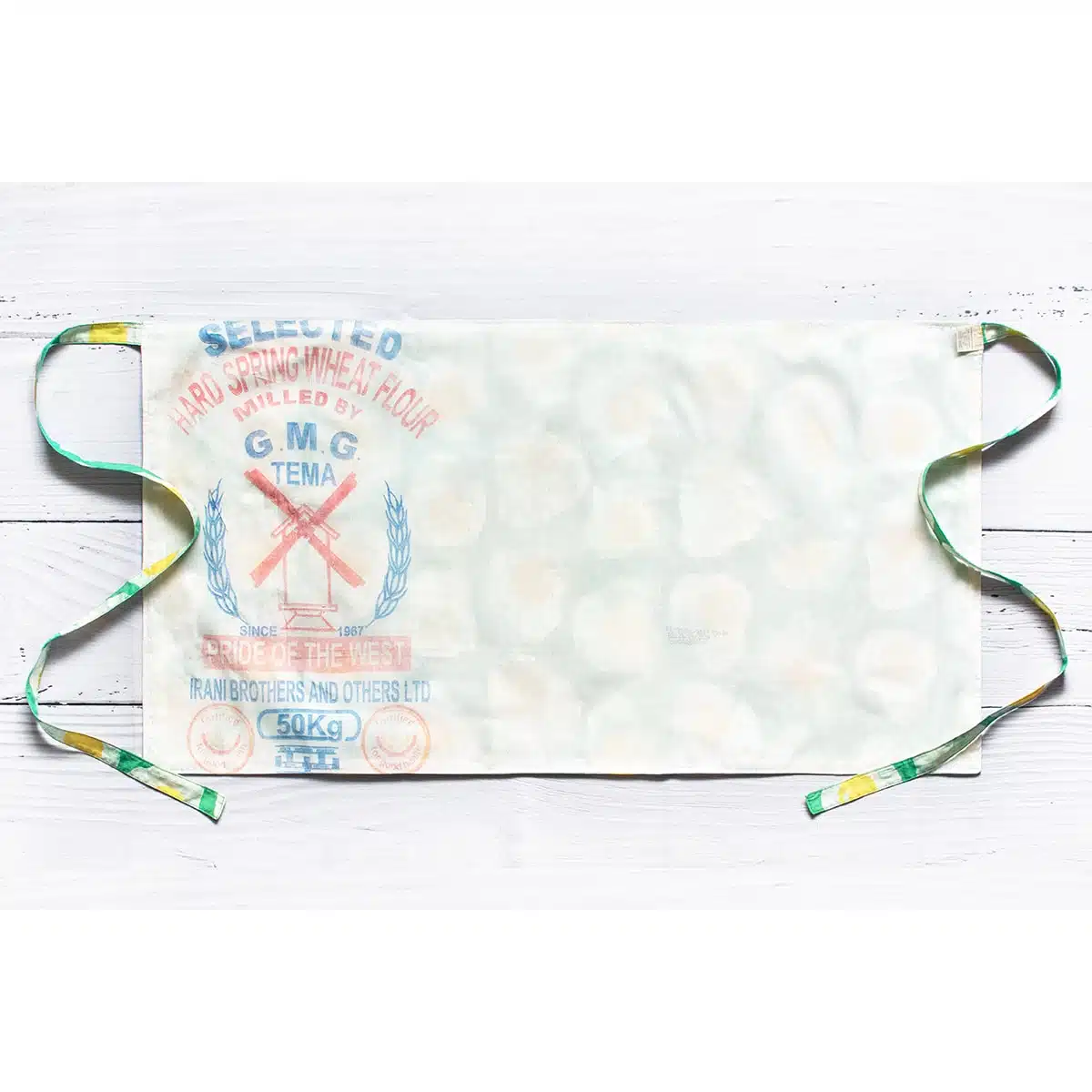 - Back lined with upcycled flour sacks