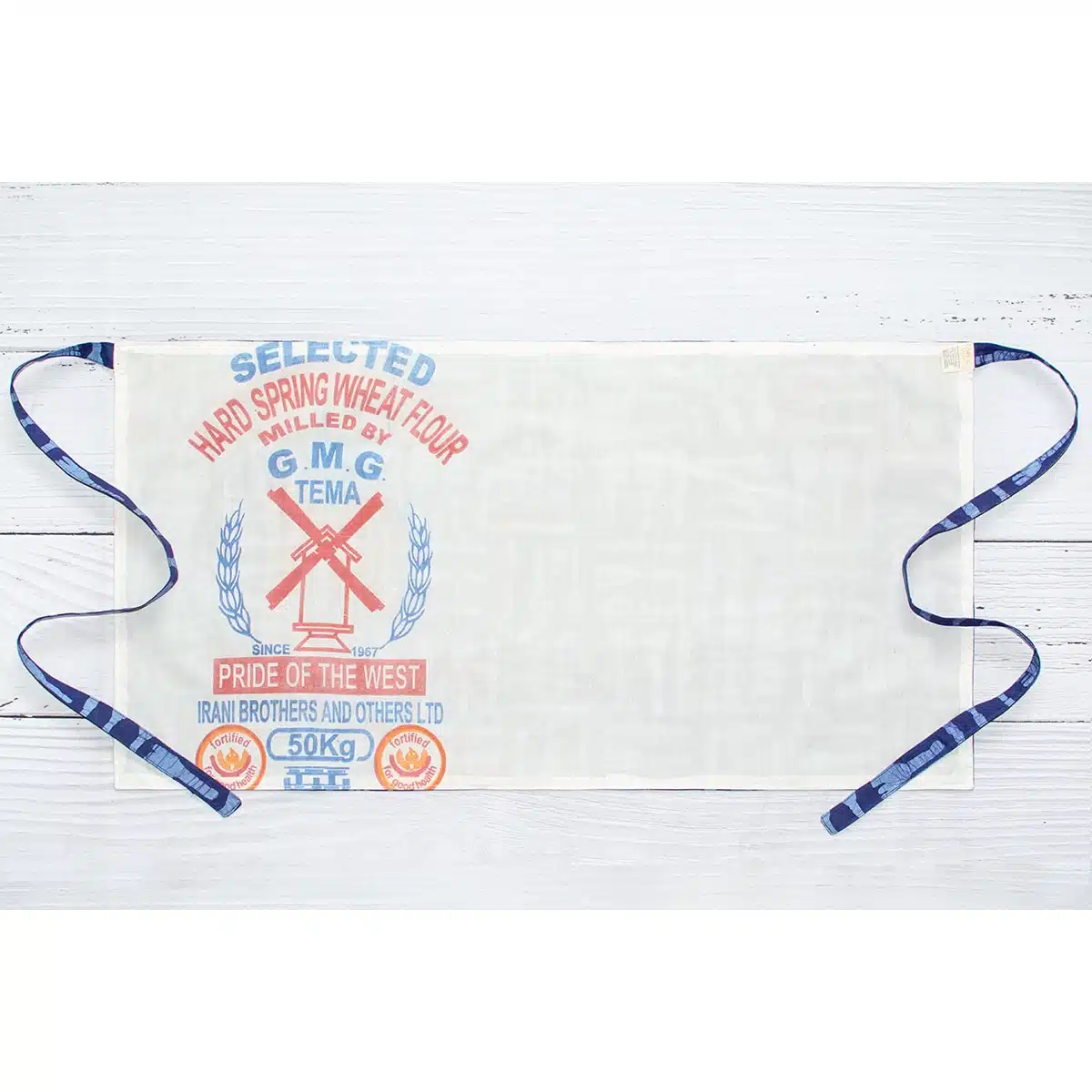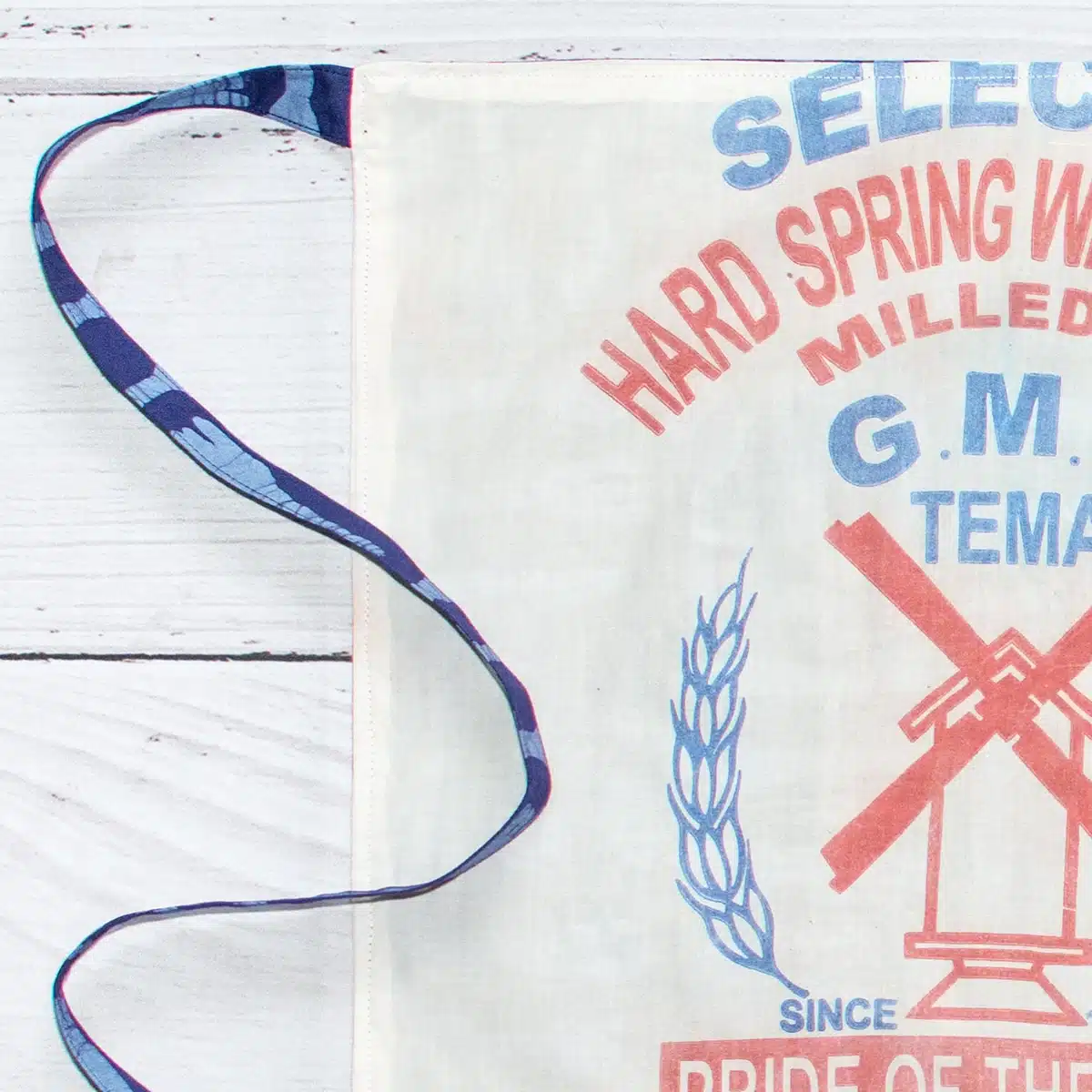 - Back lined with upcycled flour sacks