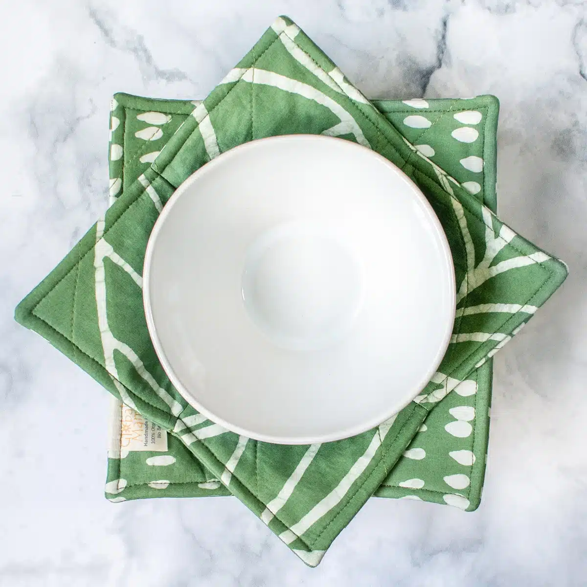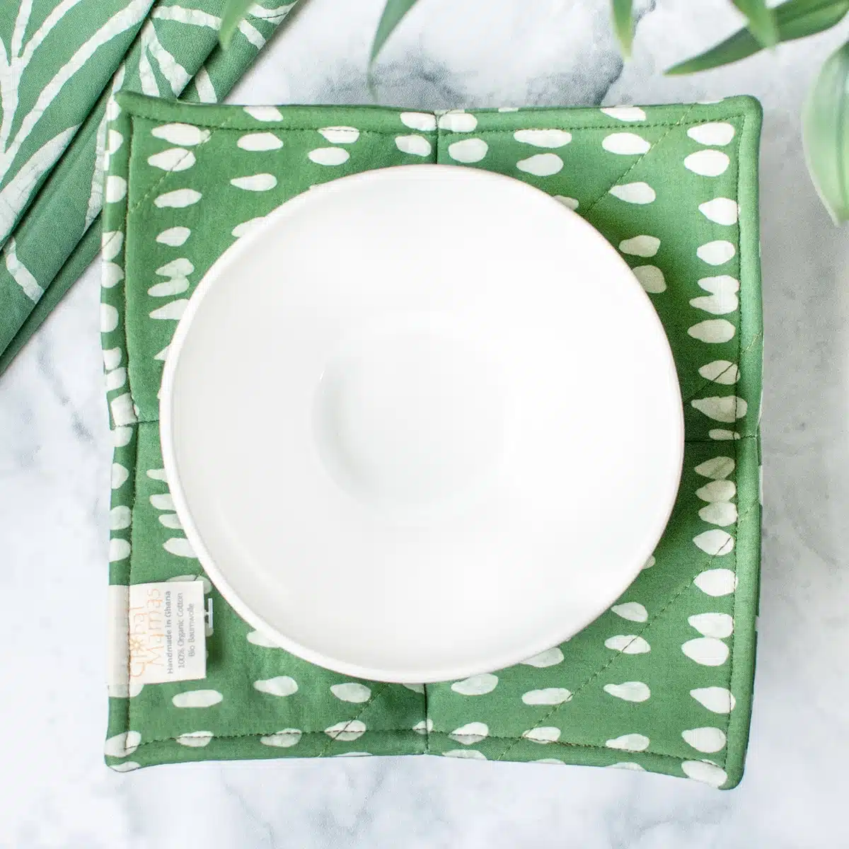 Ideal für Suppenschalen! Hält das Essen warm und schützt vor Verbrennungen. 23 x 23 cm / Durchmesser: 19 cm unten. 100 % Bio-Baumwolle.