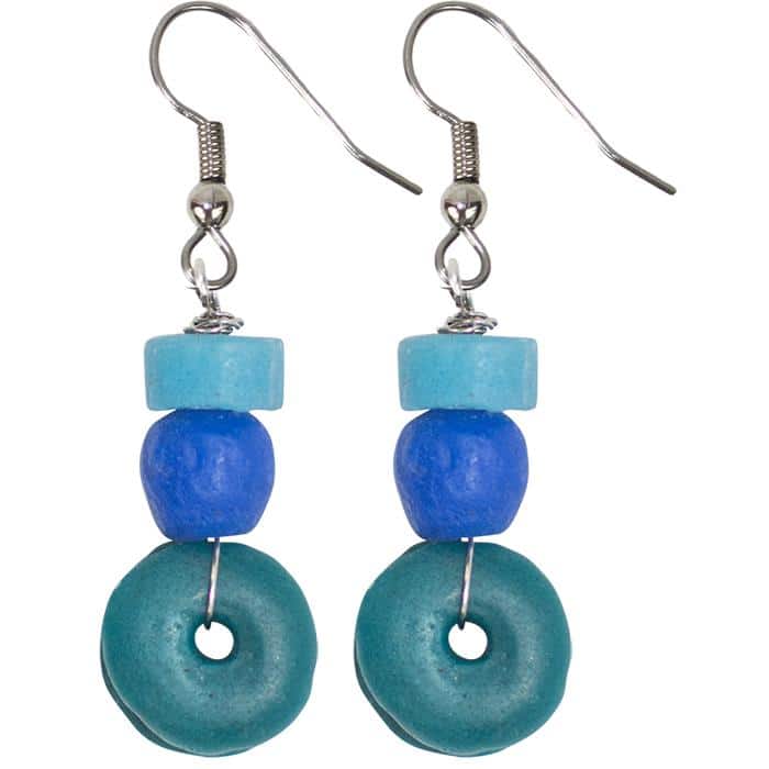 Global Mamas’ beads are made from recycled glass. Due to each piece’s individuality, all sizes and lengths are approximate. Ear wires are surgical steel.