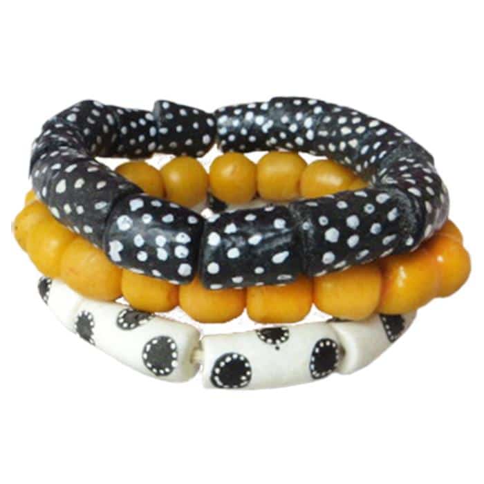 Global Mamas’ beads are made from recycled glass. Due to each piece’s individuality, all sizes and lengths are approximate. Bracelets have clear elastic band. (~19cm) 3er Set.