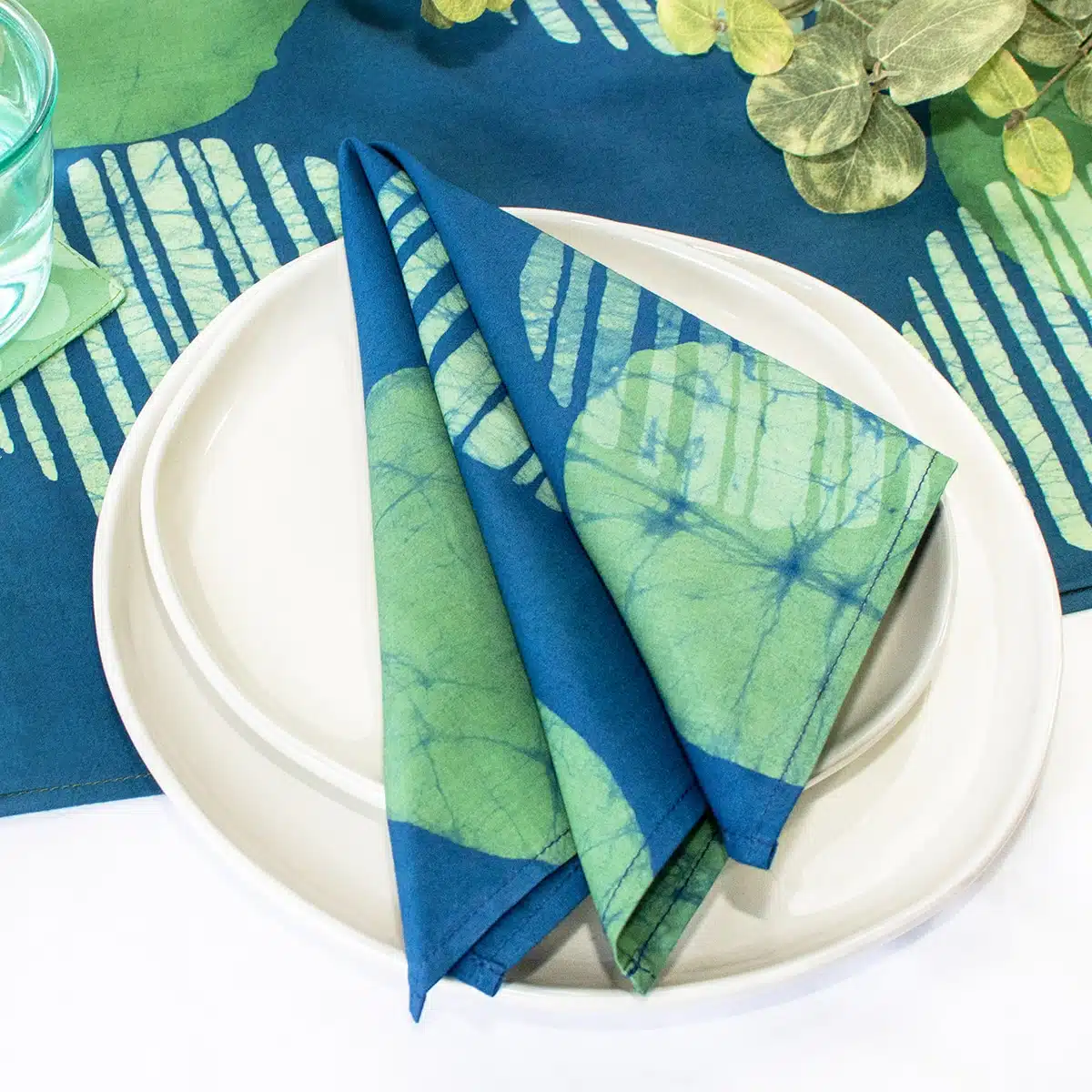 4er-Set Servietten in den Designs der Tischläufer – eine perfekte Mischung aus Nachhaltigkeit und lebendiger Eleganz.