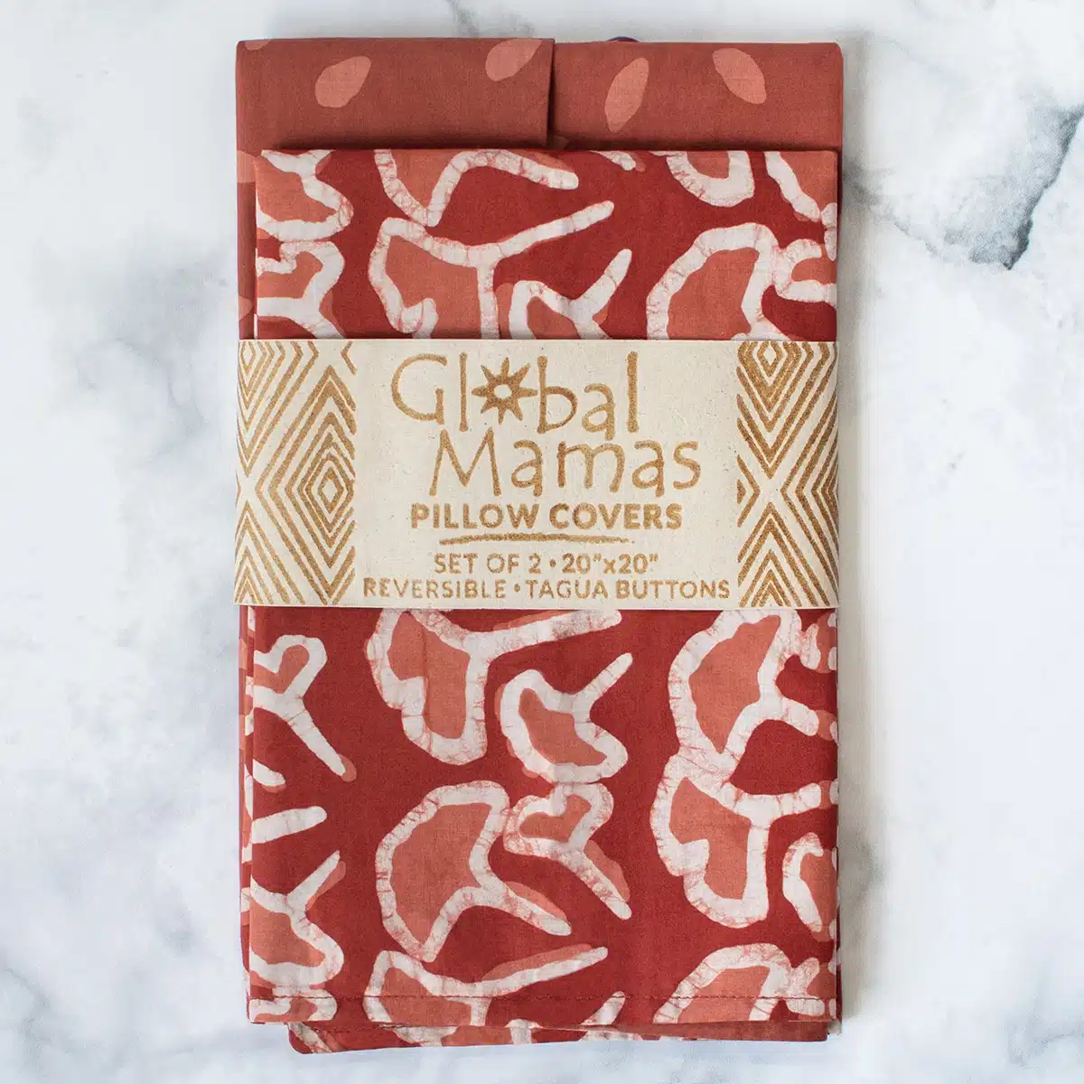 Ein Kissen – zwei tolle Looks, die Stimmung und Farbe in die Wohnung zaubern. Die beiden Prints auf Vorder- und Rückseite ergänzen sich, erzeugen Spannung und zeigen die Kreativität der Batikerinnen von Global Mamas.