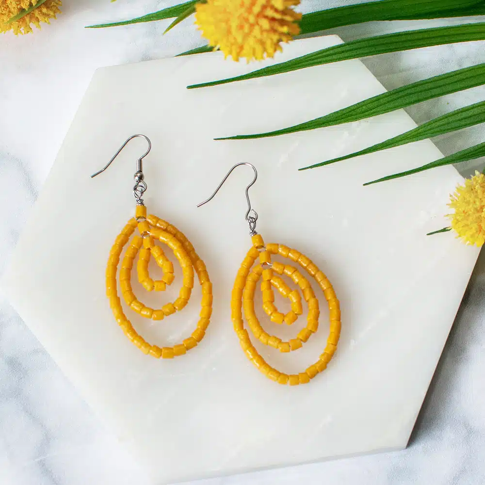 Global Mamas’ beads are made from recycled glass. Due to each piece’s individuality, all sizes and lengths are approximate. Ear wires are surgical steel. (~ 3cm)