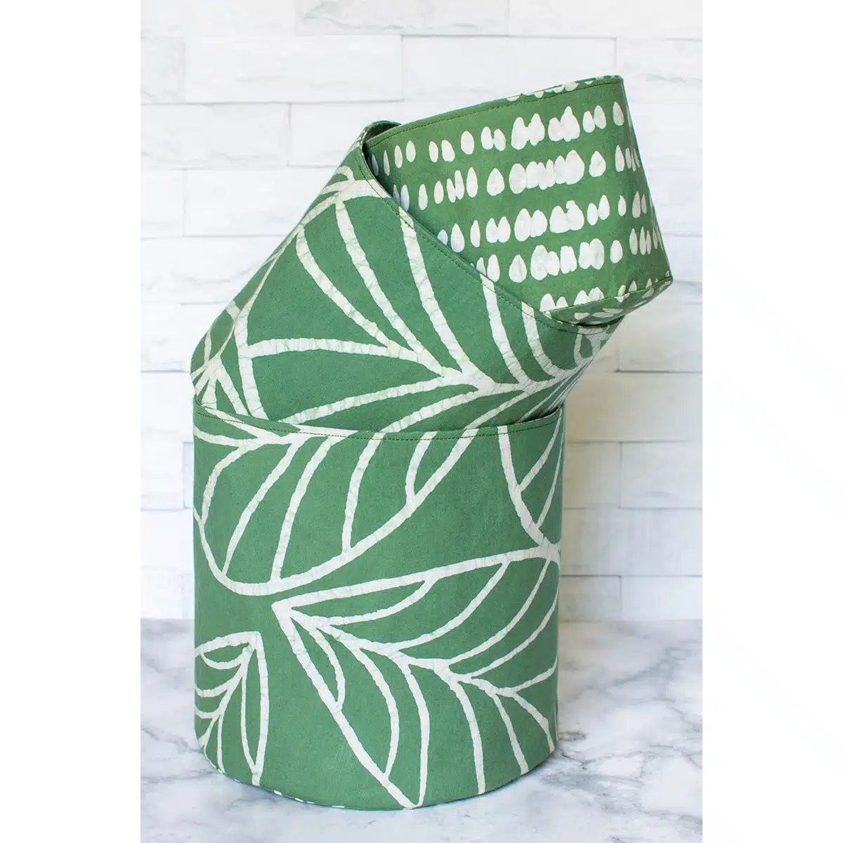 Vielseitig einsetzbares Korbset. Ein umweltfreundliches, plastikfreies und dekoratives Aufbewahrungs-Accessoire für Flur, Bad, Schrank… Außen und innen mit verschiedenen Prints, so entsteht beim Umstülpen ein schöner kontrastreicher Rand.