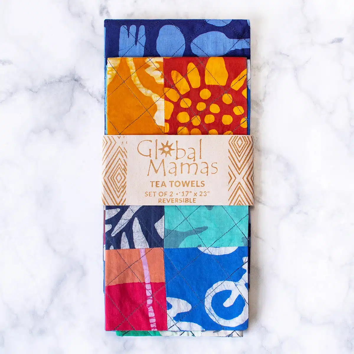 Diese fröhlichen und farbenfrohen Geschirrtücher verschönern jede Küche! Sie werden im 2er-Set verkauft mit einer ansprechenden und informativen Banderole aus handgeschöpftem Wasserhyazinthen-Papier. Ob zum Abtrocknen von Geschirr oder als dekorative Ergänzung der Einrichtung – dieses lebhafte Accessoire bringt Persönlichkeit und Funktionalität in den Alltag!